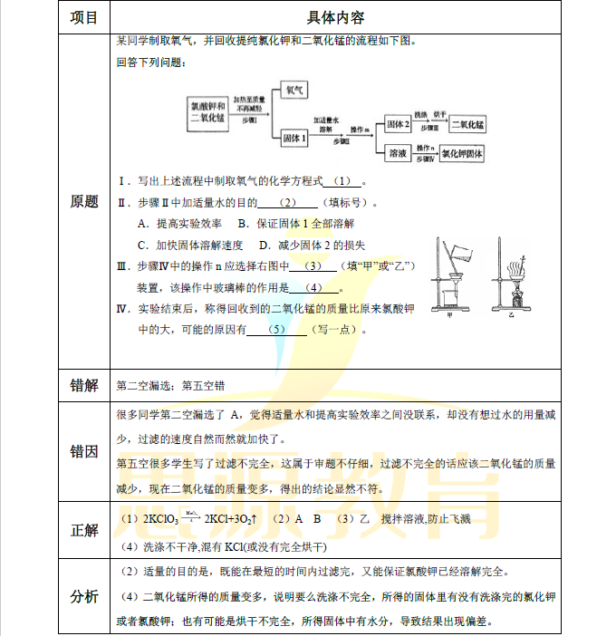 這道題與前一道題不同,要完全熟悉化學實驗中的每一個操作步驟和目的。而特別需要注意的是,在填空中的選擇題,一定要看清每一個選項,確定自己沒有漏選。