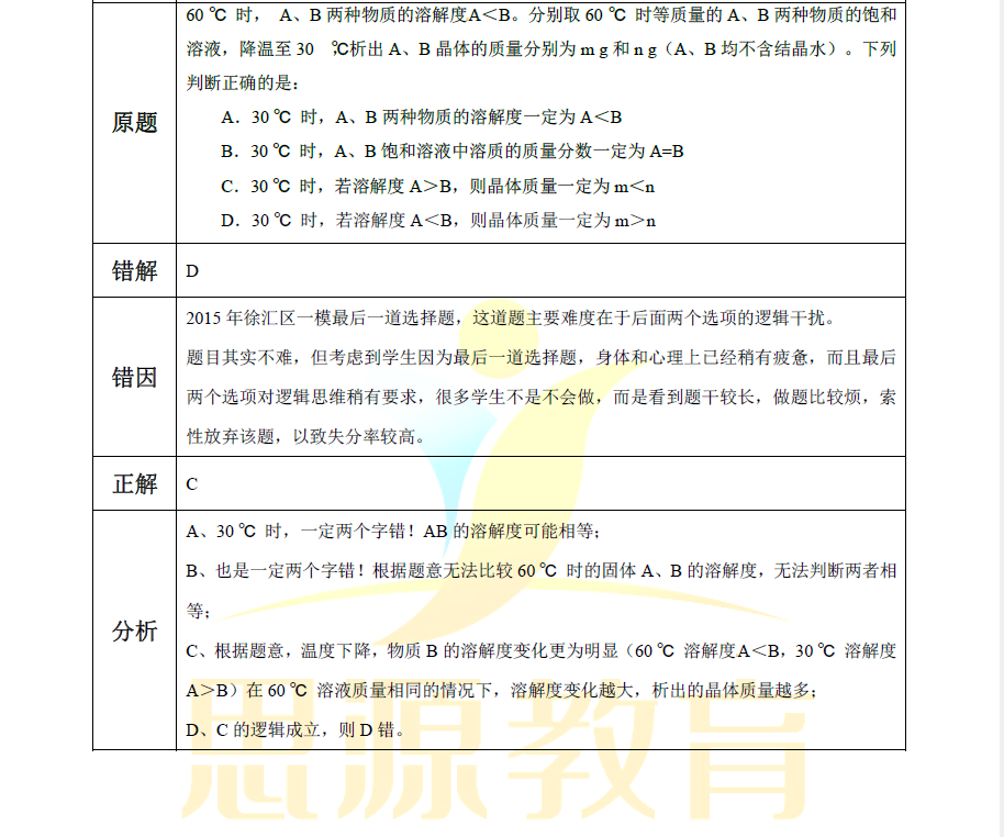 這里分析了一道2015年徐匯區一模易錯率較高的題目,學生們在看題干的時候一定要耐心仔細,有時候當你把一道長長的題目進行分割的時候,你會發現這題其實沒有你想象的那么難!