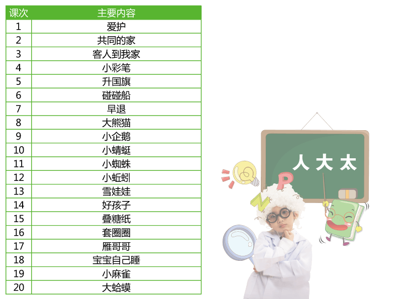 本教材根據教育部頒發的《3-6歲兒童學習與發展規律指南》編寫。該教材根據幼兒的認知特點,系統地由淺入深地安排課程,引導孩子們開心看畫、開心說話、開心表演,讓他們在“看看、想想、說說、演演”里愉快地看,大膽地想,勇敢地說,快樂地跳,盡情地演。