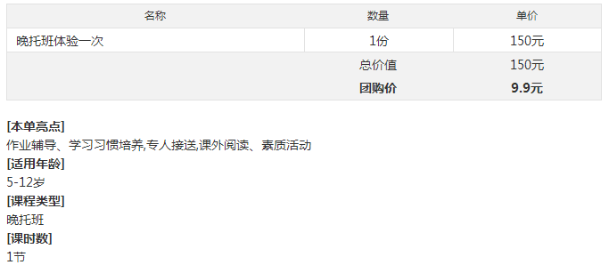 1、價值150元的晚托班體驗課現在僅售9.9元