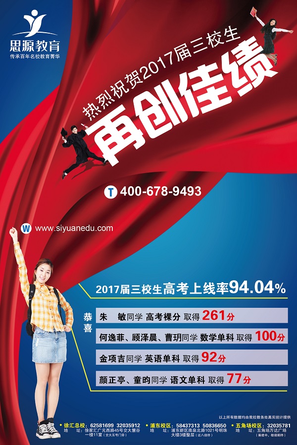 (詳情請點擊) 浦東新區(qū)臨沂路500號三樓58437313/50836650 思源教育(浦東中學生)