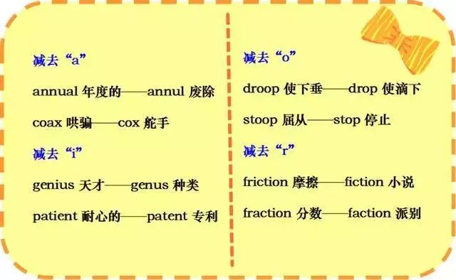 利用詞中減去某一個字母之后的差別形成對比,用舊詞記住新詞。