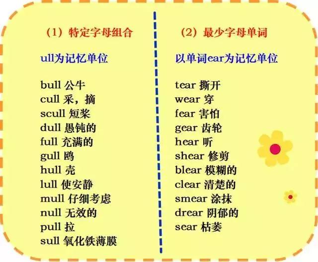 除以上3中類型外,還有尾字母對比變化進行記憶,只是這樣的單詞組并不太多,這里就不詳細講解了。學生也可以自己下去進行總結。