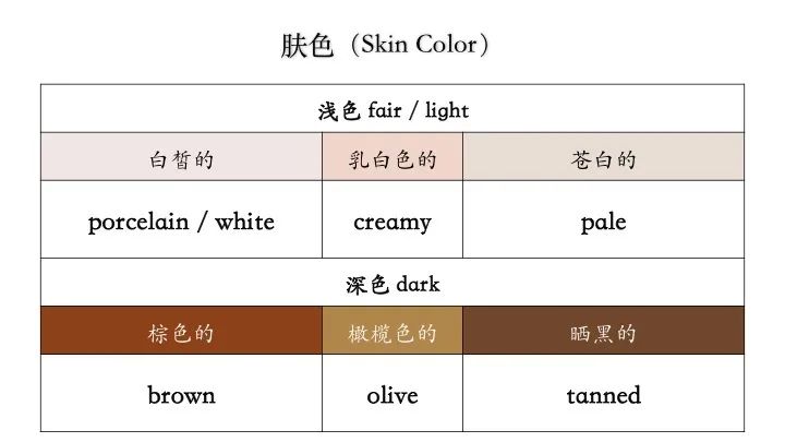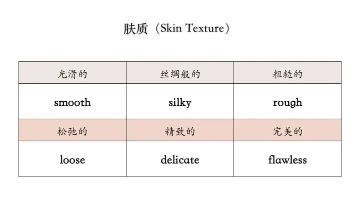 1. porcelain(/?p??s?l?n/)指“瓷器”,porcelain skin可以指皮膚像瓷一樣有著透亮的白色。