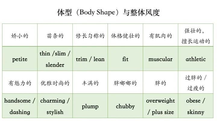 8. 很客觀地形容一個人胖,可以用overweight或者plus size;overweight主要從重量上來說,plus size主要從身材尺寸上來說。比如我們說的“大碼模特”,就是plus size model