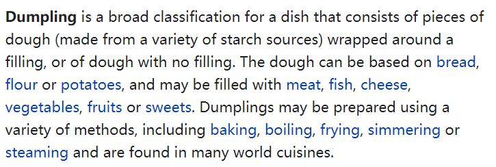 所以其實(shí)"面皮包著餡兒"的都叫dumplings