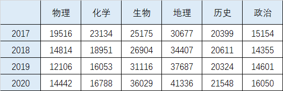 經常有同學在群里問我小三門今年的選科人數,因此今天小編整理了一份近三年來各個科目的選科人數匯總,給各位高一高二還在糾結選科的同學和家長一個參考。