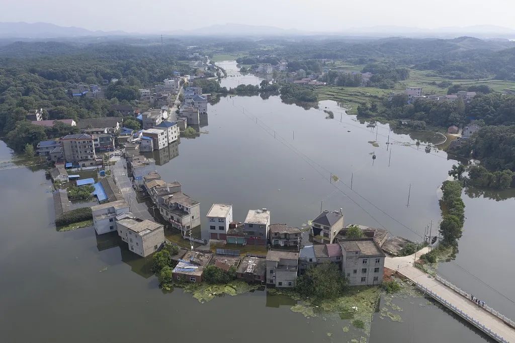 2020年7月21日,江西鄱陽湖沿岸的都昌縣汪墩鄉(xiāng)被淹沒的集鎮(zhèn)。來源:人民視覺