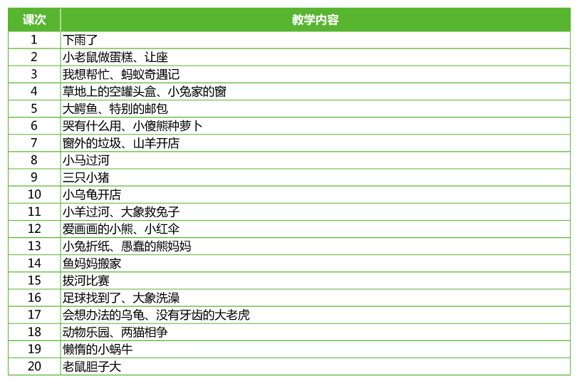 看圖說話本教材根據(jù)教育部頒發(fā)的《3-6歲兒童學(xué)習(xí)與發(fā)展規(guī)律指南》編寫。該教材根據(jù)幼兒的認(rèn)知特點,系統(tǒng)地由淺入深地安排課程,引導(dǎo)孩子們開心看畫、開心說話、開心表演,讓他們在“看看、想想、說說、演演”里愉快地看,大膽地想,勇敢地說,快樂地跳,盡情地演。