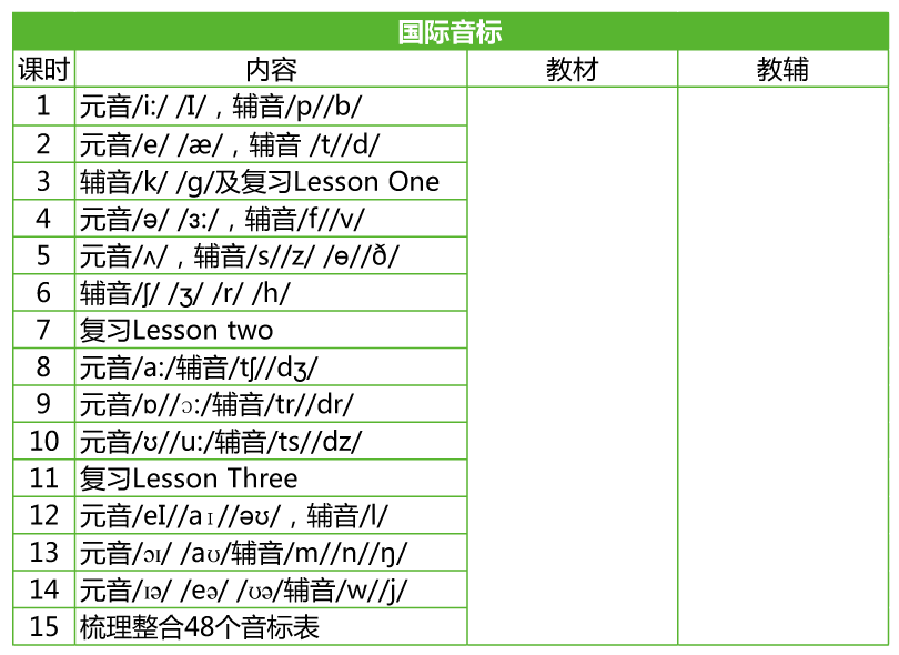 國際音標(biāo)國際音標(biāo)是一套用來標(biāo)音的系統(tǒng),由國際語音學(xué)學(xué)會設(shè)計。國際音標(biāo)為口語聲音的標(biāo)準(zhǔn)化提供標(biāo)示方法。國際音標(biāo)遵循一個原則,即“每一個可分辨的讀音或音段用一個符號來表示”。最新的國際音標(biāo)共有48個音標(biāo),其中包括20個元音和28個輔音。音標(biāo)的發(fā)音規(guī)律總結(jié),能更有效地幫助學(xué)生通過音節(jié)來記憶和認(rèn)識單詞,而非單個字母。