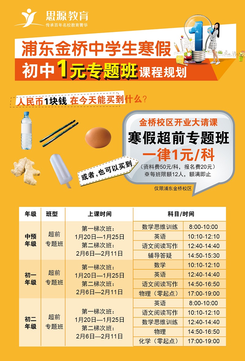 (詳情請點擊) 浦東新區(qū)臨沂路500號三樓58437313/50836650 思源教育(浦東中學(xué)生)