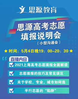 講座活動] 2021高考志愿填報直播課來襲!—— 5月4日晚19:00點,不見不散喲  日期:2021-04-29 14:40:21 點擊:194 好評:0