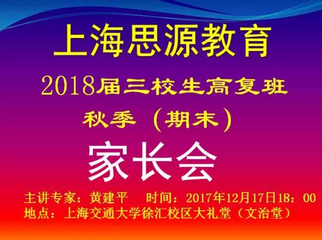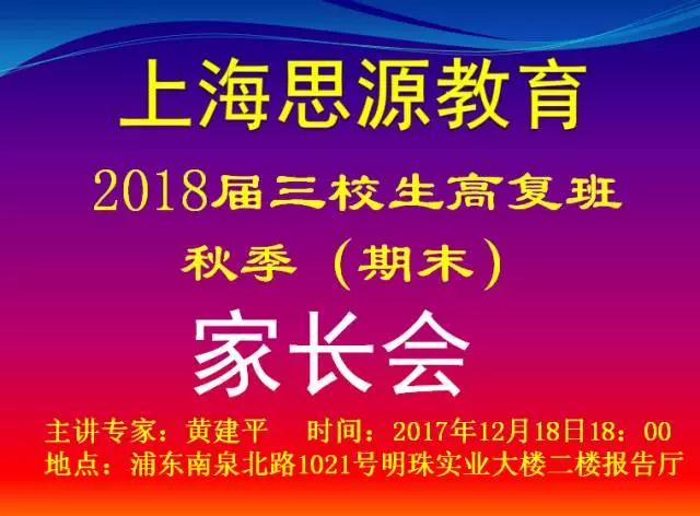 昨日晚六點三十分,上海思源教育2019屆學業水平考復習班考前家長會活動在上海市信息管理學校中職一部舉行。思源三校生高復班教育專家、思源高復班創辦人黃建平老師主講該次家長會。