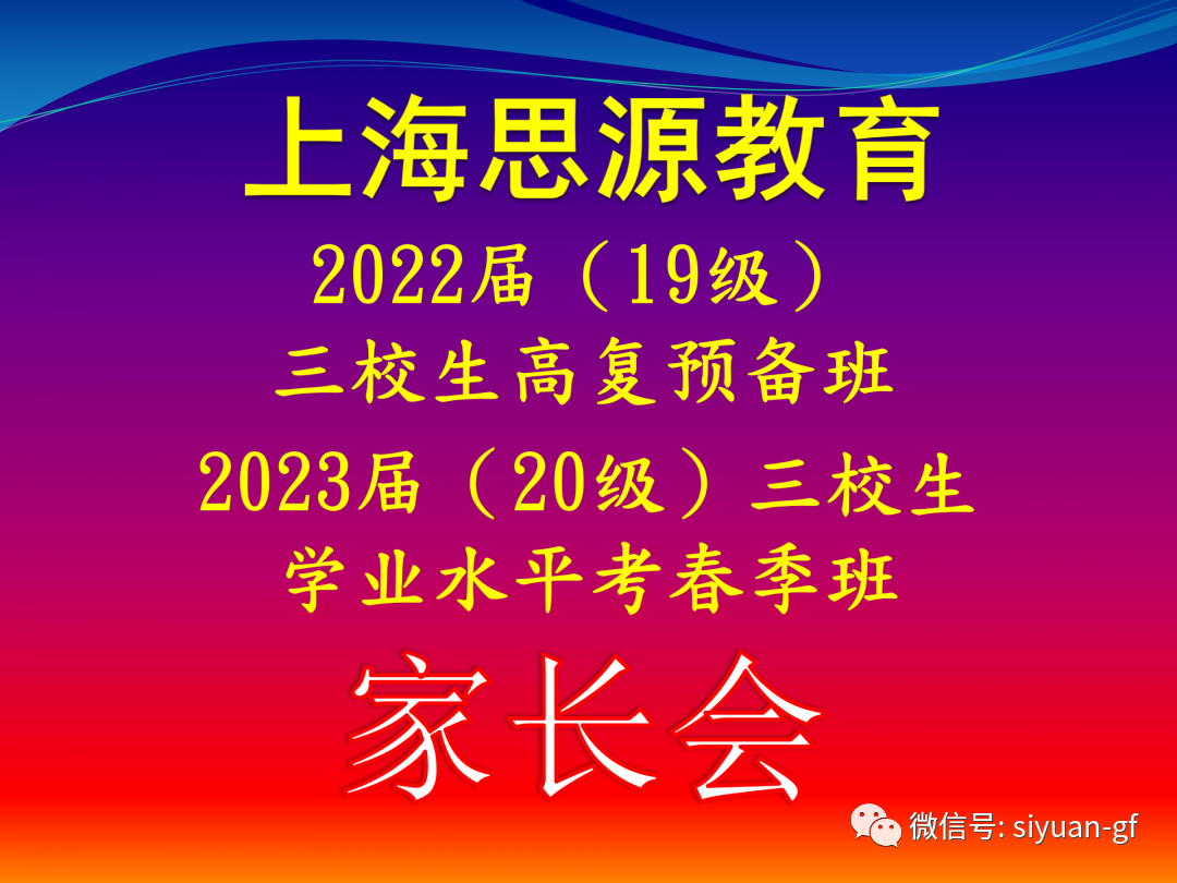 6月6日,思源教育2022屆三校生高復預備班和2023屆學業水平考春季班在徐匯校區先后舉行了2場家長會。此次會議主要分為三個部分,第一部分是22/23屆家長會,第二部分是對21屆55個本科錄取的優秀學員進行表彰會,第三部分為高復咨詢。