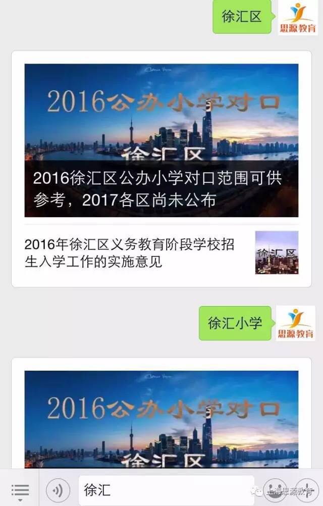 上海2017年公辦小學對口地段現在尚未公布,小編在這里給家長們整理了2016年的對口地段供大家參考。關注“上海思源教育”微信公眾號并在對話框內回復(以寶山為例:“寶山區”、“寶山小學”、“寶山”),即可查看2016年對應區域公辦小學的招生信息,以作參考。