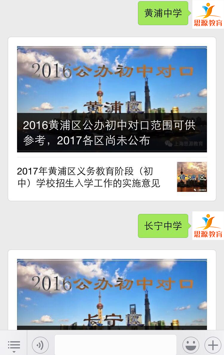 1.上海2017年各區(qū)小學、初中招生工作的實施意見以及對口地段招生信息都已公布,微信查詢到的相關(guān)內(nèi)容都已更新為2017年的最新資訊。