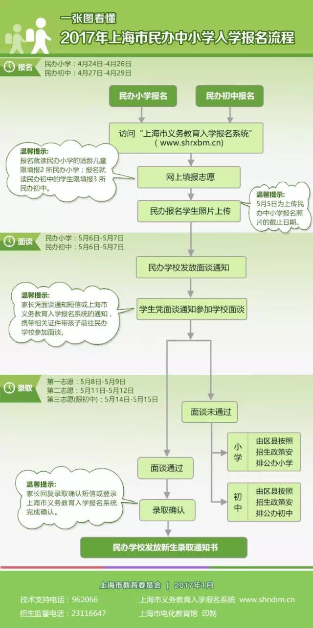 如果您的孩子需要報考民辦小學,請在4月24-26日期間,登錄系統完成報名。請注意,報名學校的面試時間或許會有沖突,請妥善選擇學校,避免學校面試時間沖突而浪費名額。