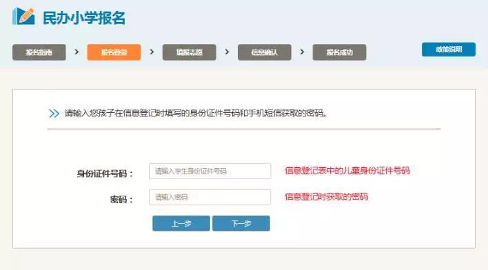 需填寫身份證件號碼(信息登記表中的兒童身份證件號碼)和密碼(信息登記時獲取的密碼)。