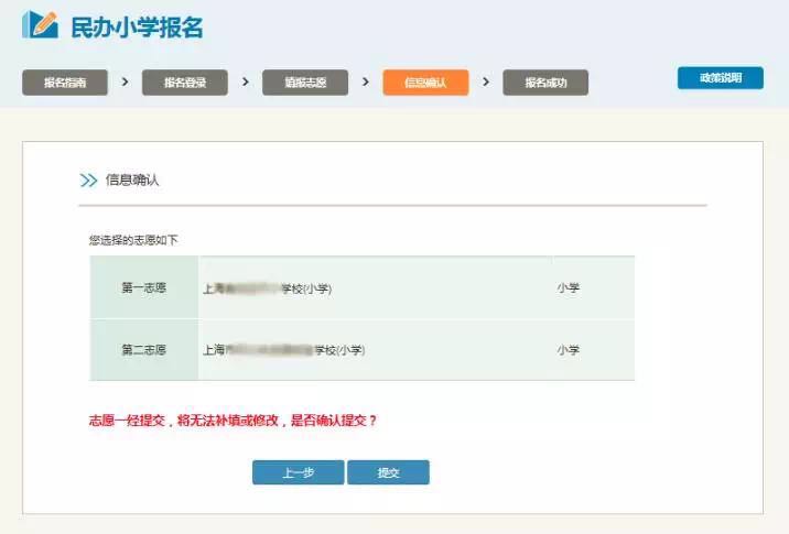 請確認是否是您在上一步中所選志愿學校,志愿一經提交無法修改,請慎重提交。