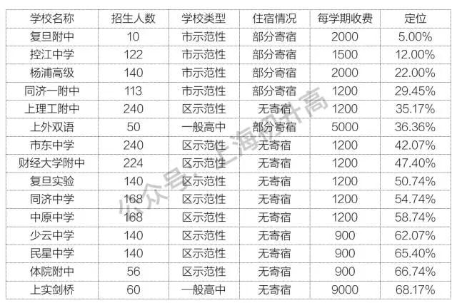 根據2016年的中考數據,做一個大致的學校定位,供閔行考生參考。