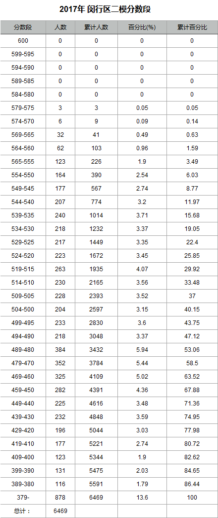 本次閔行二模考人數為6469人。
