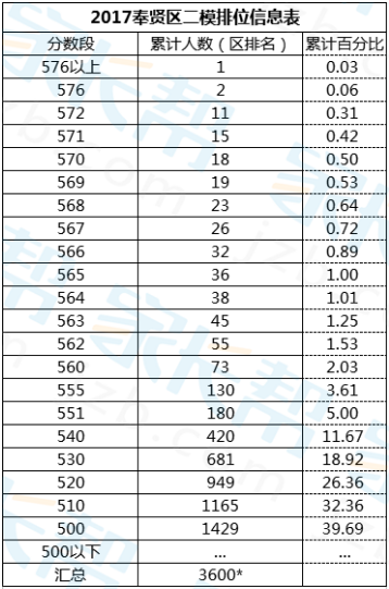 本次奉賢中考人數在3600(抱歉沒有更詳細的數字了)與部分家長對過之后,確實和學校給的排位一致,所以分享給大家!