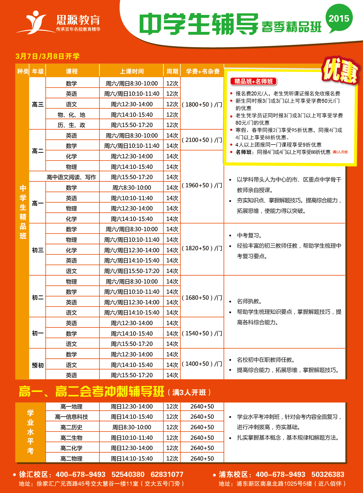(詳情請點(diǎn)擊) 徐匯區(qū)南丹東路238號2層62932552/62932882 思源中高考學(xué)習(xí)中心