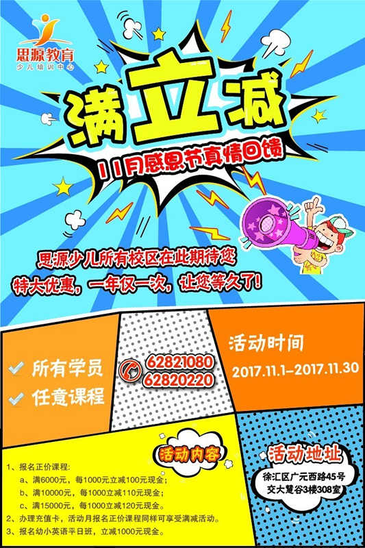 各大校區:思源教育(浦東中學生)、思源教育(徐匯少兒)、思源教育(徐匯中學生)、思源教育(徐匯三校生高復)、思源教育(浦東三校生高復)、思源教育(浦東上南)、思源教育(閔行龍柏)、思源教育(寶山大華)、思源教育(楊浦大橋)、思源教育(浦東金橋)、思源教育(浦東八佰伴)、思源教育(黃浦一部)、思源教育(黃浦二部)