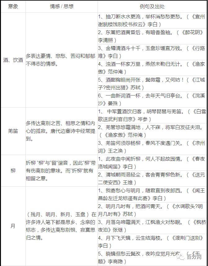 三、古詩(shī)詞常見(jiàn)意象歸納