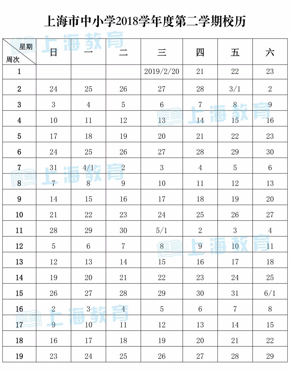 寒假2019年1月24日開始, 2月19日結束