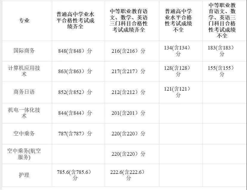 報(bào)關(guān)與國(guó)際貨運(yùn)專業(yè)::高中學(xué)業(yè)水平考試成績(jī)?nèi)亢细瘢殬I(yè)適應(yīng)性測(cè)試≥172分,錄取總分≥872分(總分相同,看職業(yè)適應(yīng)性測(cè)試文化基礎(chǔ)模塊≥89分)