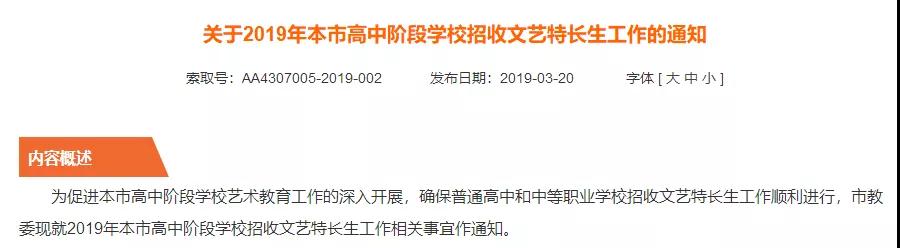 近期,上海教育官網發布了 2019上海中考文藝特長生和體育特長生招生方案!