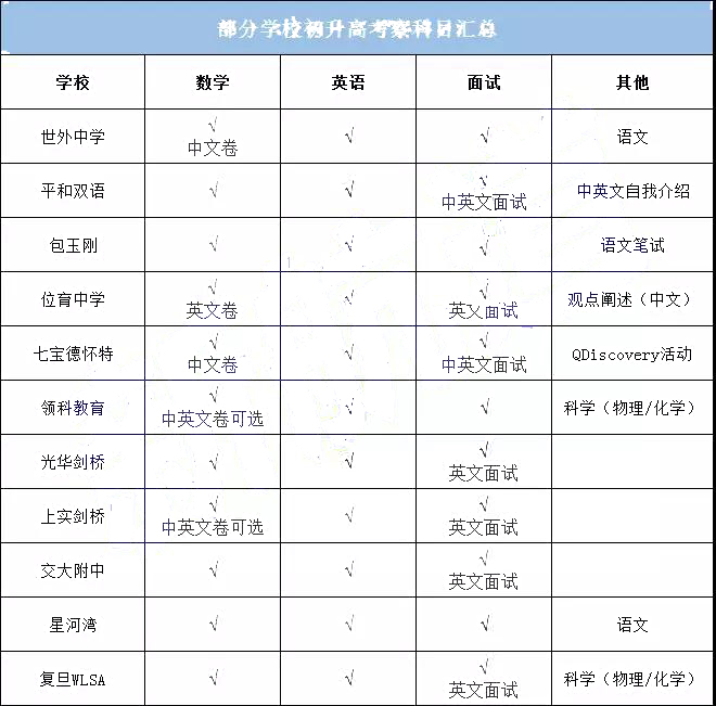 筆試科目筆考數(shù)學(xué)和英語,部分學(xué)校會新增額外科目,比如現(xiàn)在很多學(xué)校會考核物理、化學(xué)等科學(xué)科目,主要考量學(xué)生的學(xué)科水平是否能夠銜接國際課程學(xué)習(xí)的需求。