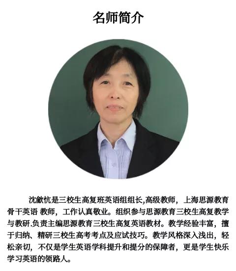 A:大家好,我是思源教育三校生的英語老師沈歈忼,我執教三校生已經十幾年了。在教學中遵循“愛與尊重是教育的出發點”,全心全意為孩子服務。