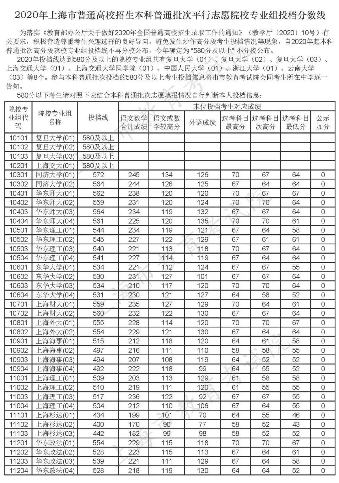 @高三考生們,2020年上海市普通高校招生本科普通批次平行志愿院校專業(yè)組投檔分數線公布!速戳!