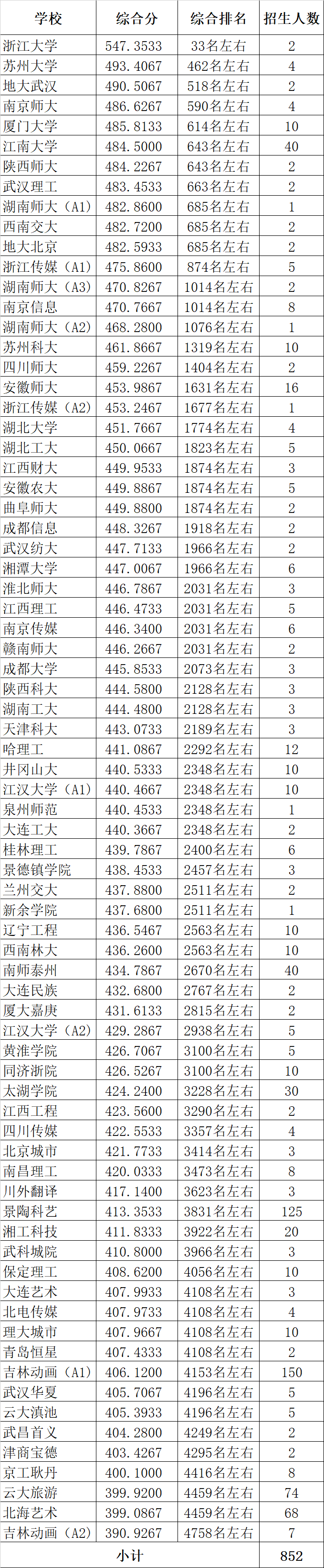 美術與設計學類,投檔成績按文化成績占50%,專業成績占50%進行折算,即:本科投檔成績=文化成績*50%+專業成績*660/450*50%。