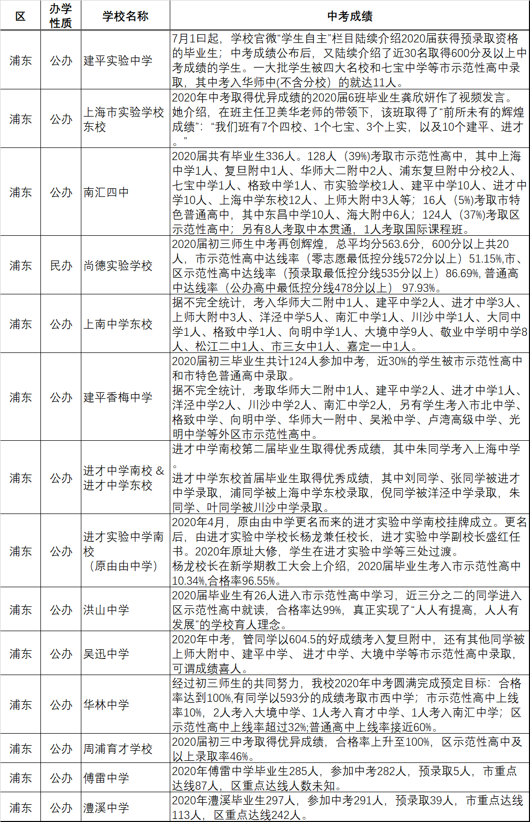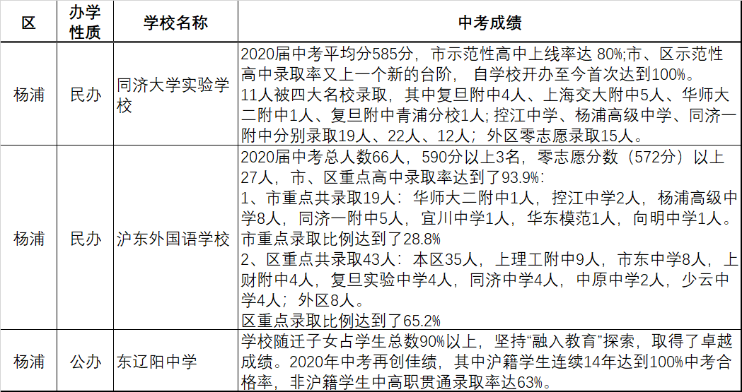 中考平均分在590+以上的有9所初中,3所都在楊浦區。楊浦區的考生可以說非常幸運了!除了老牌頂尖HY,LS,ZJ等初中,郊區的九峰實驗(松江),嘉華二今年中考表現也非常優秀。