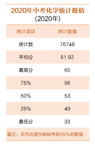 下表是2020年中考物理和化學的分數情況,以下數據采集樣本僅含本市應屆生(含隨班就讀)中的前95%,其他樣本不計入在內。