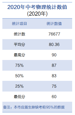 下表是2020年中考物理和化學的分數情況,以下數據采集樣本僅含本市應屆生(含隨班就讀)中的前95%,其他樣本不計入在內。