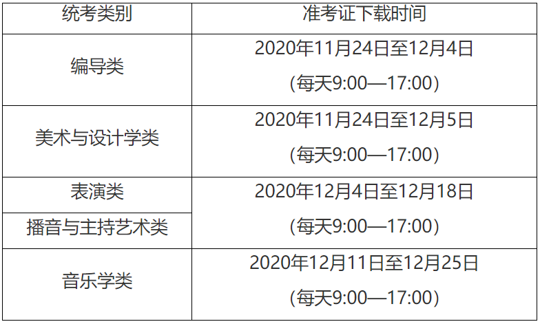 11月24日起,各類別藝考生在指定時間內下載準考證。