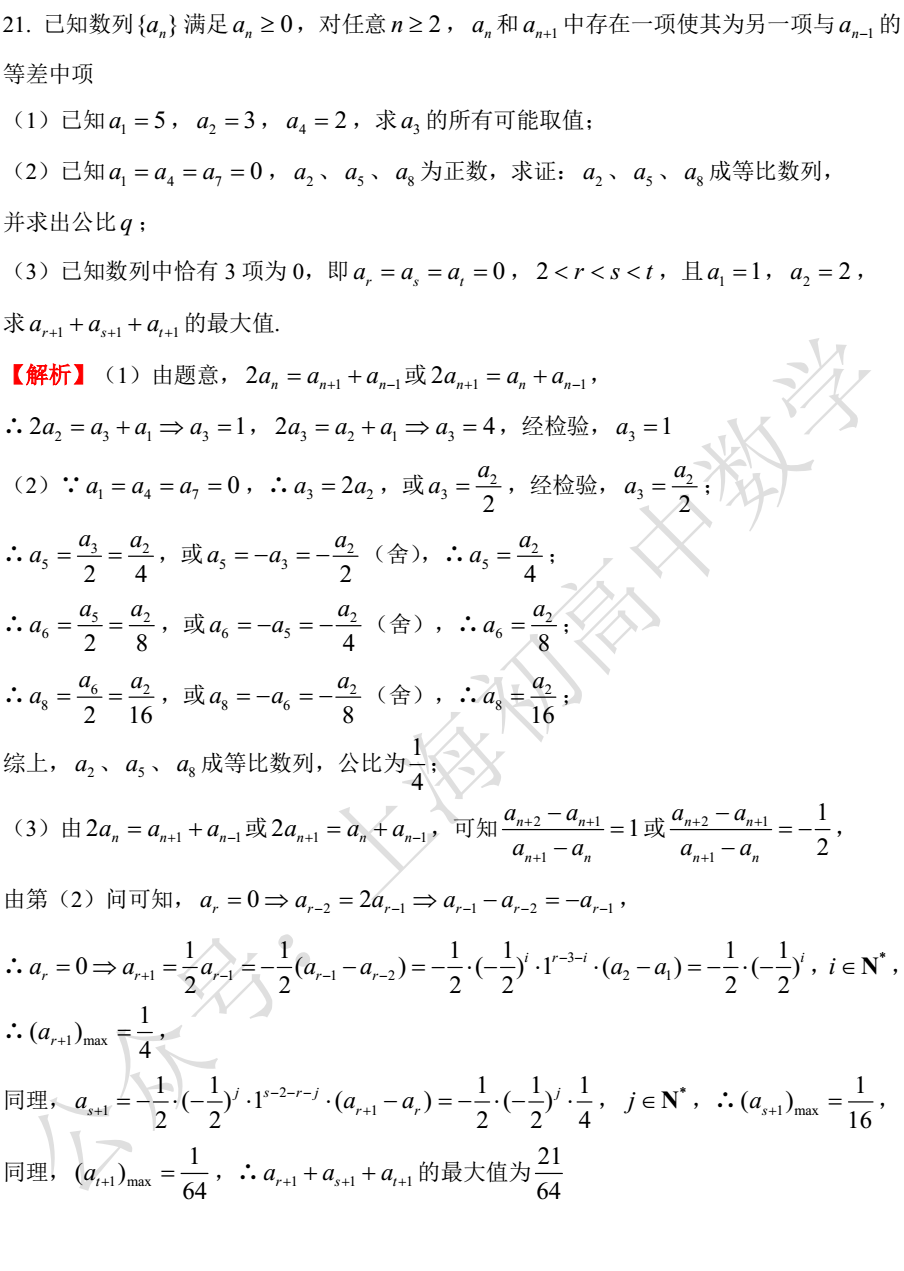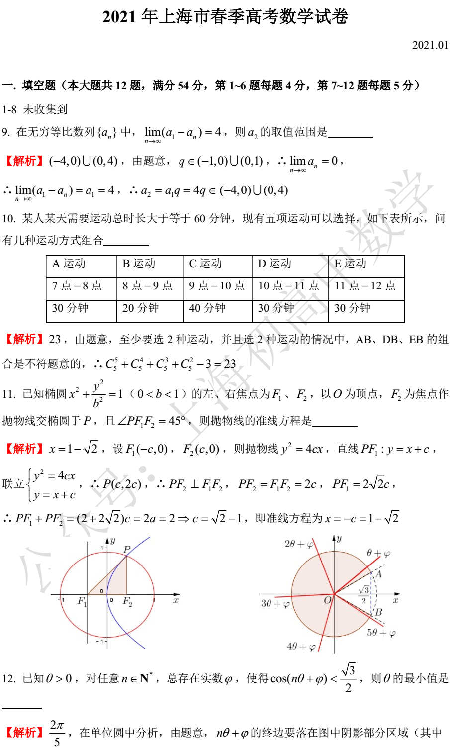 圖片僅供參考,大致做了一遍,壓軸題有難度,其他尚可,并且20題第(2)問的題干部分,一說是f(ax)=a,一說是f(ax)=x,目前暫時取f(ax)=a做的,歡迎勘誤。也歡迎大家提供春考真題,回憶版本也行,同時歡迎大家留言對2021春考數(shù)學(xué)卷的感受。文末有pdf文件下載鏈接