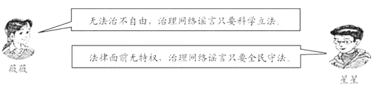28.選擇薇薇觀點:“無法治不自由”是正確的。因為法治與自由相互聯系,不可分割。一方面,法治標定了自由的界限,另一方面,法治是自由的保障。“治理網絡謠言只要科學立法”是片面的。治理網絡謠言離不開科學立法,因為科學立法是依法治國的前提。治理網絡謠言還需要嚴格執(zhí)法、公正司法、全民守法,同時需要堅持依法治國和以德治國相結合。