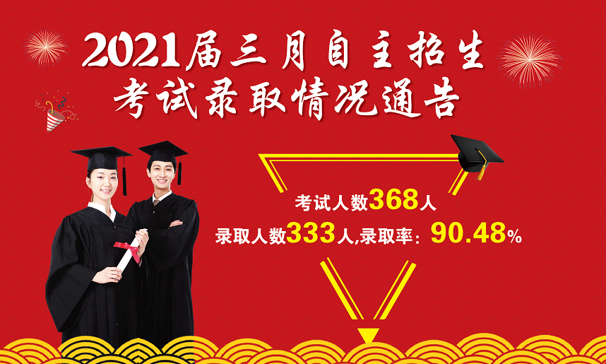 高考傳捷報、桃李競芬芳。在思源教育2021屆全體師生的努力下,三月考成績取得了前未有的突破,再創佳績!思源三校生共368人參加三月高考,錄取人數333人,錄取率達90.48%。熱烈祝賀這些取得佳績的莘莘學子們,思源因你們而倍增光彩!
