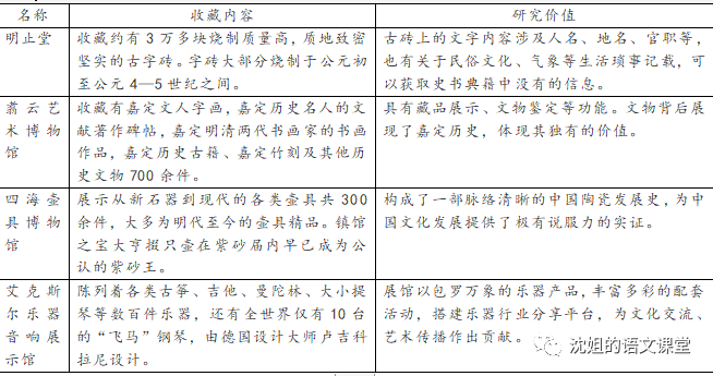 嘉定部分民間博物館和藝術館的收藏內容及研究價值情況如下: