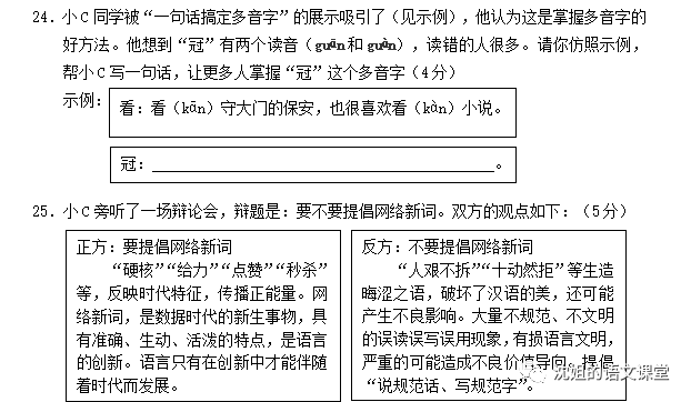 25.參觀結束后,同學們打算制作一個短視頻。在配畫外音時,大家對“發”的讀音產生了分歧,有的讀“程十發(fà)”,有的讀“程十發(fā)”。下列說法較合理的兩項是( )( )(4分)