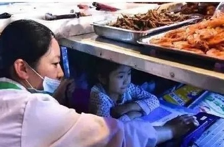 ③又因為小孩子的學習需要監督,所以女孩父母只能帶著女孩一起到市場學習網課。