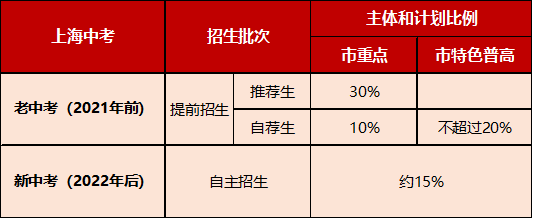 新中考的自主招生跟老中考的提前招生很相似,新中考自主招生的主體也是市重點和特色普高,占比只有市重點總招生計劃的15%左右。