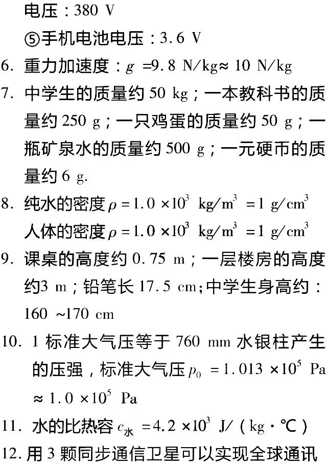 常用的物理量