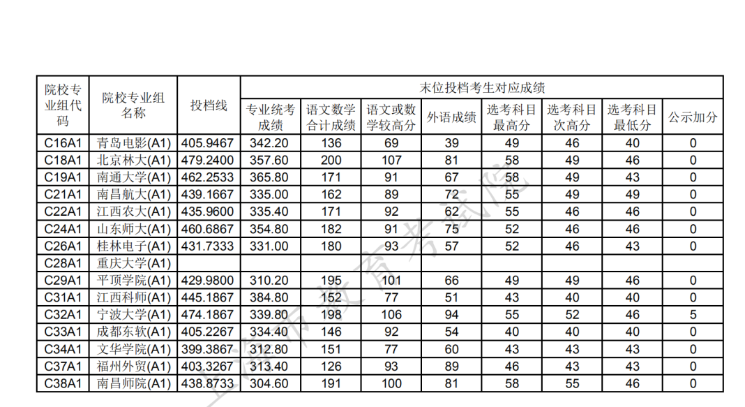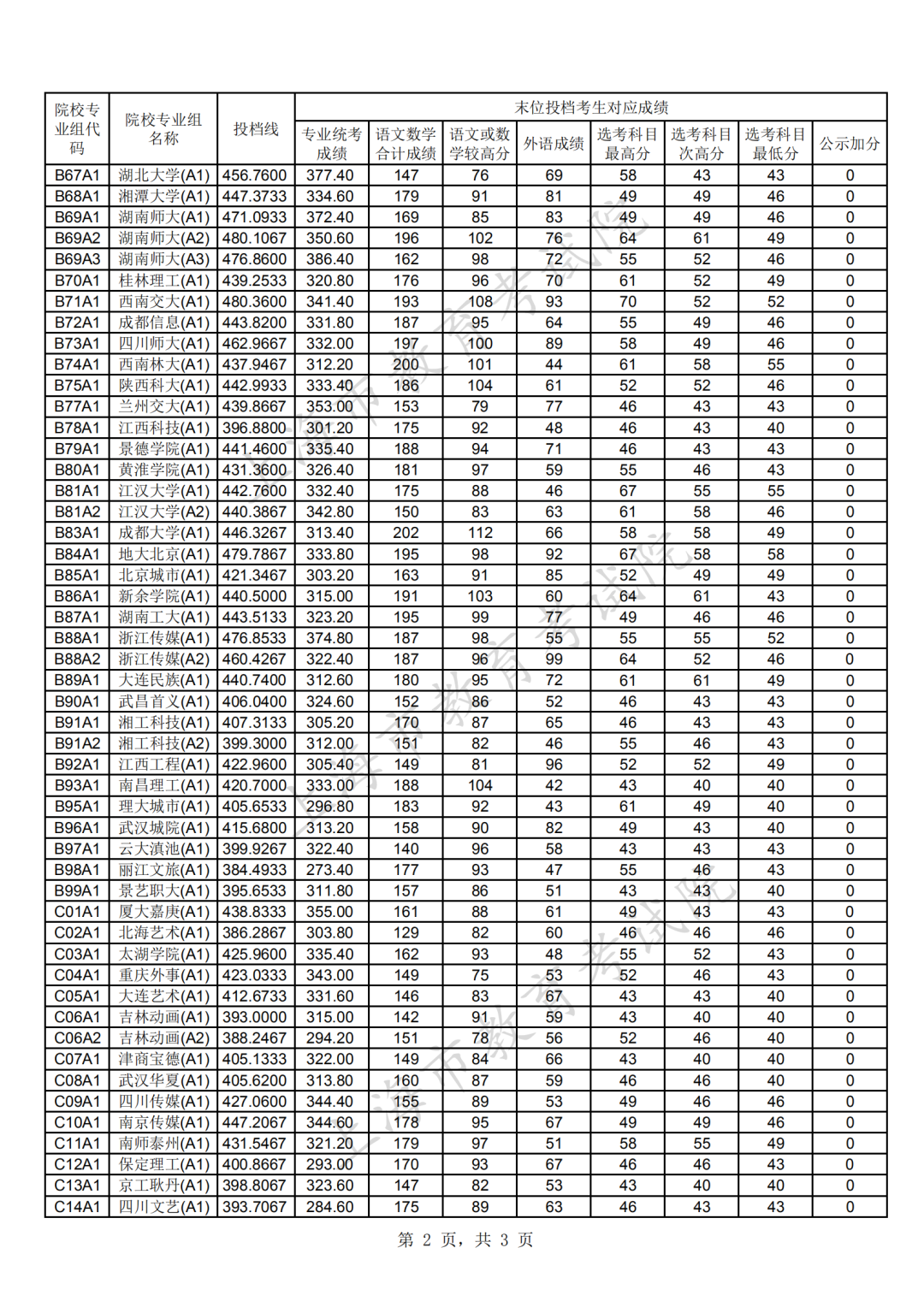 2.本科藝術甲批次平行段院校專業組投檔分數線