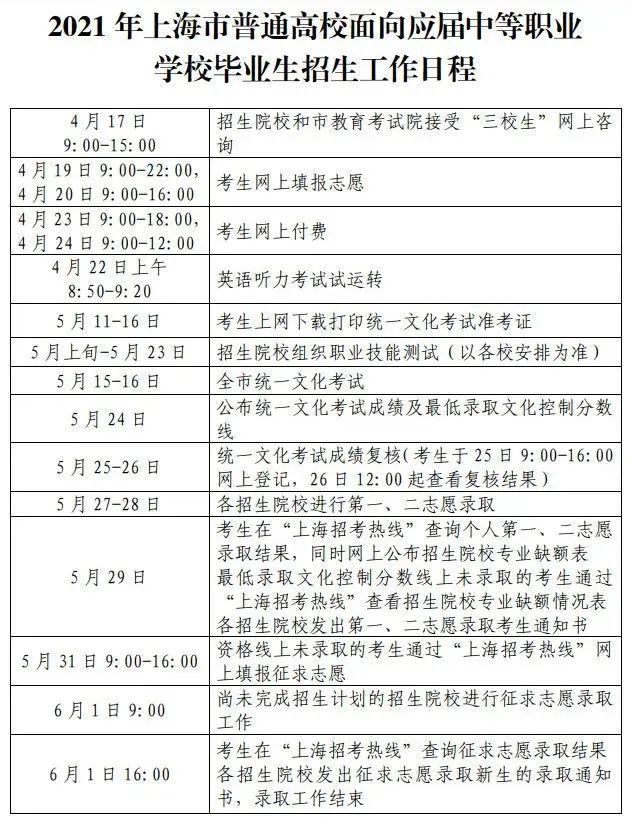 滬籍應屆三校生/隨遷子女(納入入學當年中職校招生計劃的進城務工人員隨遷子女的三校生僅可參加專科層次錄取,滬籍應屆三校生本科或專科均可參加)